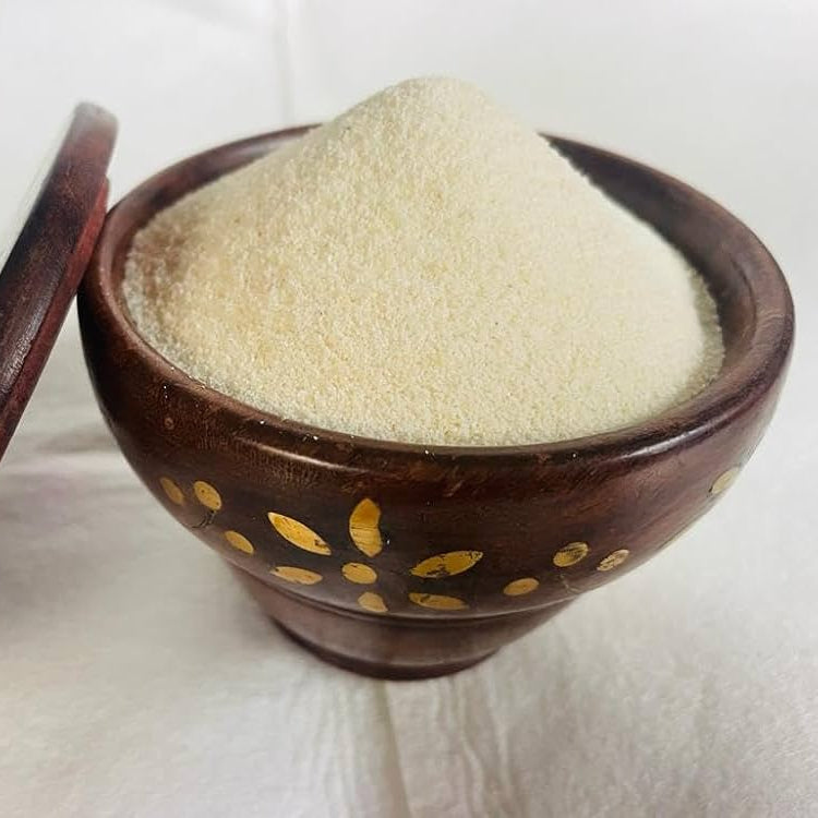 A popular ingredient in the indian household. It is made from durum wheat and has a coarse texture with a slightly nutty flavor. The roasting process enhances the taste and aroma of the rava, making it a versatile ingredient for various dishes.